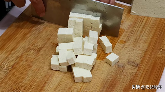 第三:取一块老豆腐切块,然后用开水烫一下去掉豆腥味。姜切片,葱切段,再取小嫩葱切葱花。