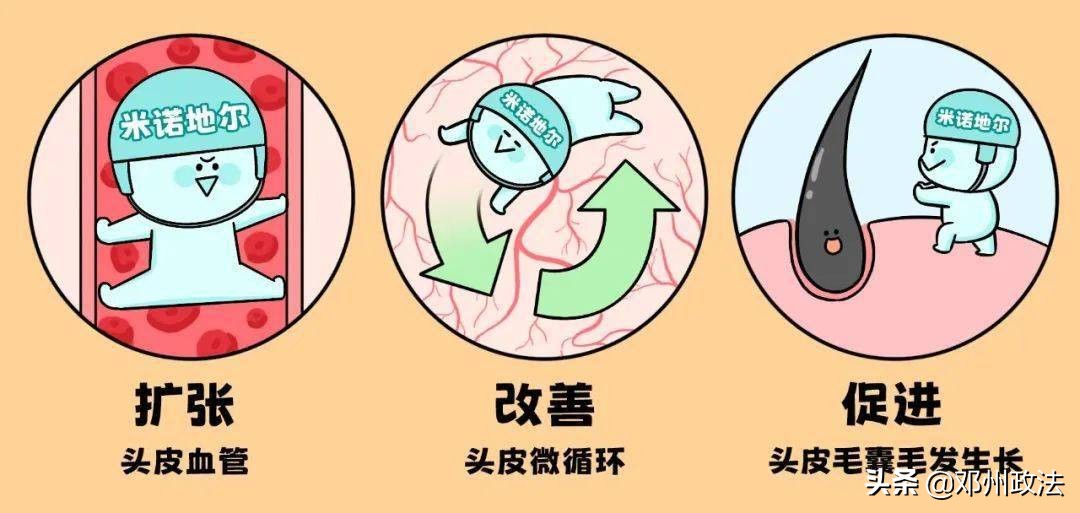 一般认为它通过刺激真皮毛乳头细胞表达血管内皮生长因子,扩张头皮血管、改善微循环等作用,来促进毛发生长[2] 。