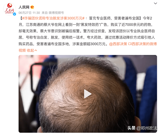 最近又有白发脱发「特效药」诈骗团伙被端,涉案 3000 万元。
