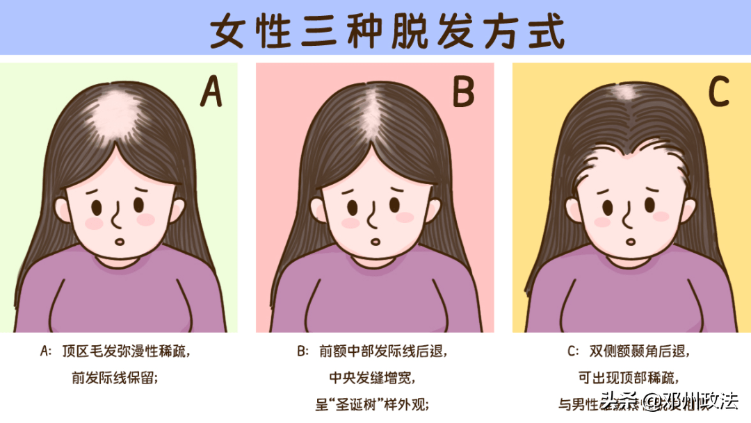 目前认为,女性雄脱也分为三种不同脱发方式。