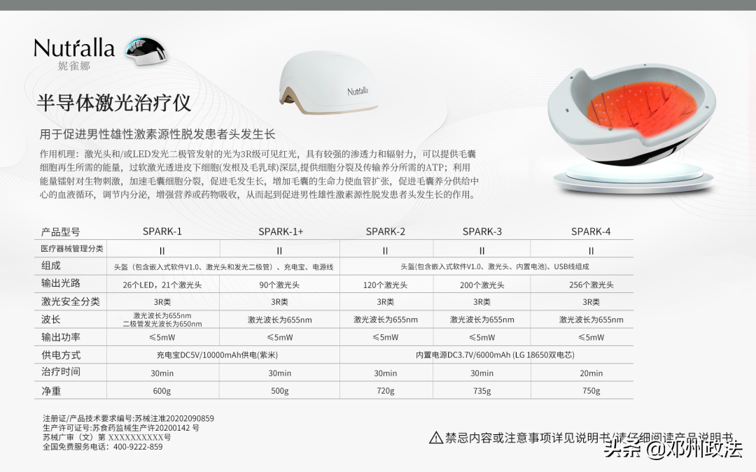 这款生发帽有不同型号,可以试试 SPARK-1+,它藏着 90 颗激光二极管,能提供 655 nm 的激光波段