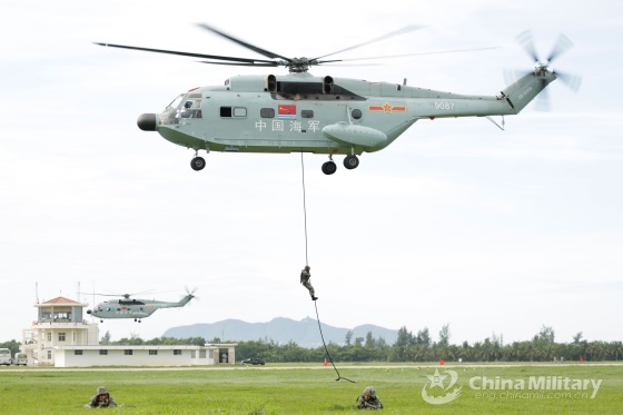 直-8C系列是这一构型中的一个较为特殊的分支,是海军为大型两栖攻击舰和综合登陆舰配备的舰载运输直升机,主要用于两栖立体登陆作战,同时还发展出直-8CJ海军舰载训练直升机。直-8C系列除了恢复两侧浮筒设计,还恢复了水密型船型底设计,因此重新具备两栖能力。直-8C使用了涡轴-6C发动机,但采用了全新设计的动力舱,其尾梁上部的整流罩取消,尾部三号发动机进气口略为加高,后端垂直收尾,因此外形较为特殊。直-8C和CJ两型基本一致,仅直-8CJ安装有光电探头和探照灯这一区别。涂装方面,两型均采用全机舰艇灰统色涂装,但CJ采用白色编号,并在机身侧面涂装大幅海军军旗和“中国海军”中文字,而C型只在进气口两侧涂装中灰色两位数机号。