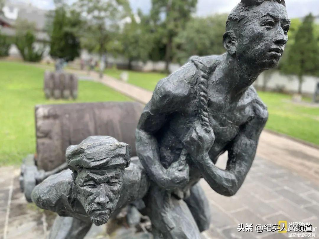 比真人大的青铜雕像刻画了一批批竭尽全力的村民们:一个重复出现的形象是一群精瘦的光膀子男人拉着巨大的石磙。有些人看起来很像年迈的许老师。