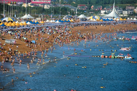 夏天来黄金海岸游泳,人是非常多的,公共设施还算完善,帐篷、换衣房、淋浴设施等一应俱全,但是都是收费的。像所有的景区一样,在这里买东西,价格是要相对高一些的。游泳一定要注意安全,金石滩的水很深,有时候有很大的浪。