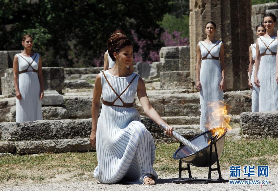 2016年4月21日,里约奥运会在位于希腊伯罗奔尼撒半岛上的奥运会发源地古奥林匹亚采集成功,奥运圣火一直沿用阳燧取火法(图片来源:新华社)