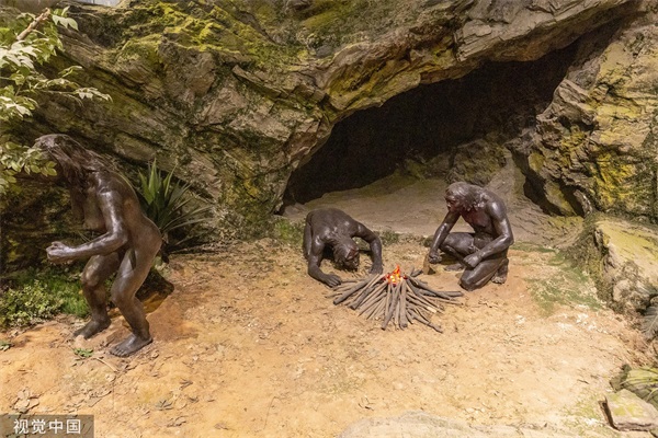 北京房山周口店遗址博物馆藏:“北京人”用火(图片来源:视觉中国)