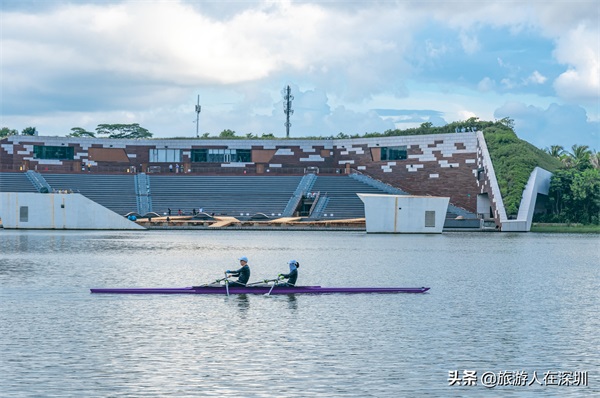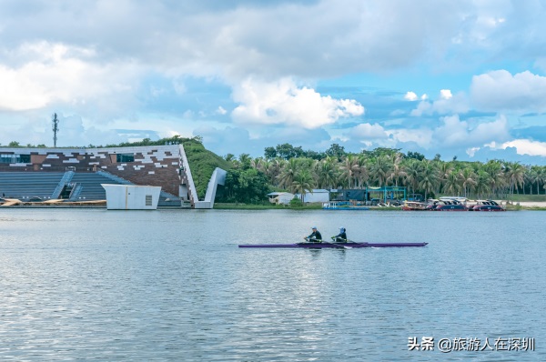 目前也是整个广东省最为优质的皮划艇训练基地之一,为此,在这里,你除了可以看很多人在湖边休闲之外,还可以看到有皮划艇队员在这里进行日常训练。