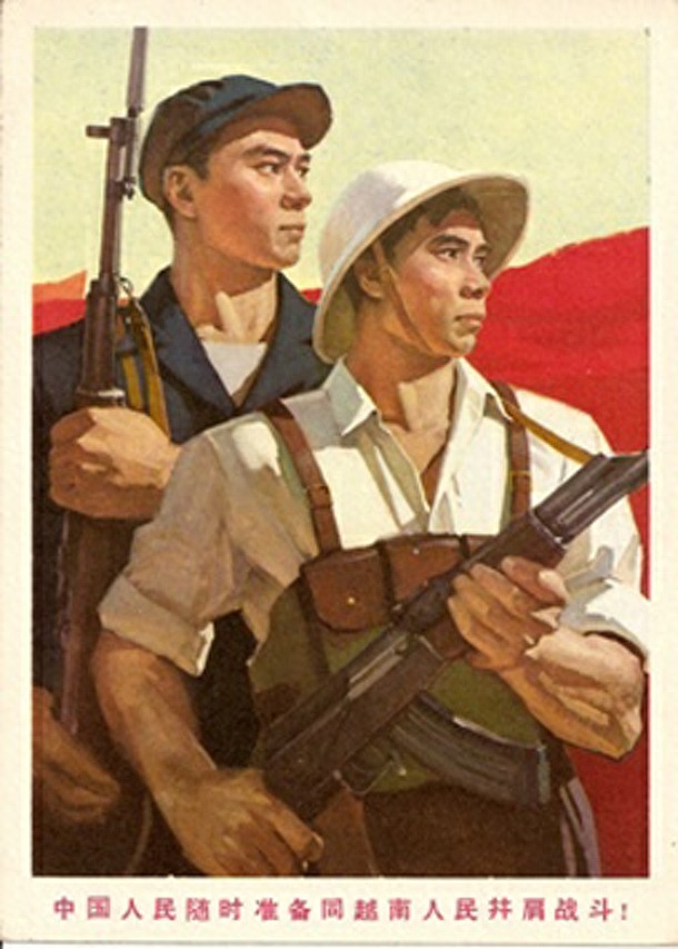 1949年中华人民共和国成立,中越关系进入了一个新的阶段,新中国有了更加充分的人力、财力、物力支持越南人民的民族解放斗争,1950年初,在越南抗法战争的艰难之际,胡志明主席访问北京,毛泽东主席决定向越南提供全面援助。胡志明曾热情赞扬越中两国人民的友谊是:“越中情谊深,同志加兄弟”。