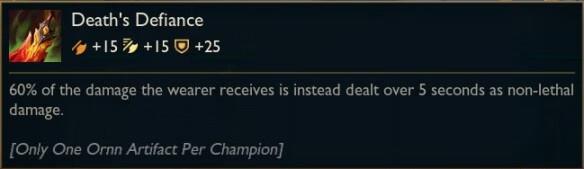 佩戴者的生命值在第一次降至40%时会免疫伤害和控制持续2.5秒。