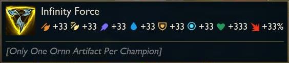 +33攻击力,+33攻击速度,+33法术强度,+33初始法力值,+33护甲,+33魔抗,+333生命值,+33%暴击几率