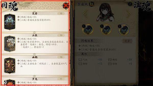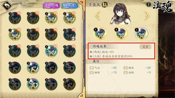 2、同魂效果可在「注魂」页面魂石的详细信息面板查看。