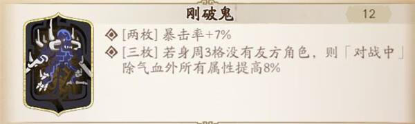 推荐理由:考虑到御风职业的特性,对暴击率的要求很高,有不少特性都是暴击后触发的,而且大部分的作战都是依靠御风的高机动性突击先手秒人,所以增加暴击率的刚破鬼或赤练鬼比较合适。