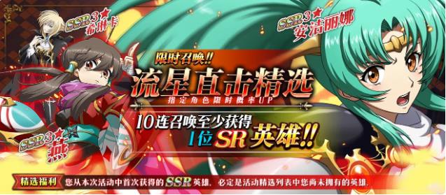 限时召唤「流星直击精选」中SSR级英雄燕、希琳卡、安洁丽娜出现概率提升!