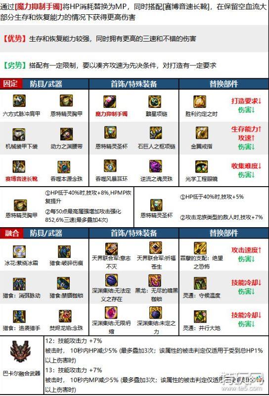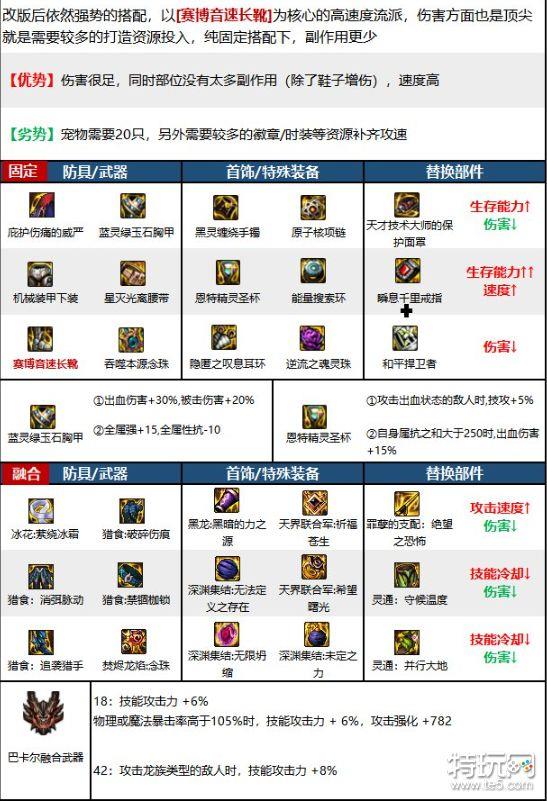 【配装特点】改版后依然强势的搭配,以赛博音速长靴为核心的高速度流派,伤害方面也是顶尖,就是需要较多的打造资源投入,纯固定搭配下,副作用更少。