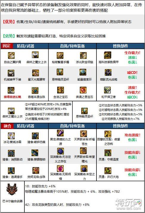【配装特点】在保留自己赋予异常状态的装备触发强化效果的同时,能快速对敌人附加异常,在传统自我异常流的基础上,牺牲了一部分坦度换取更高伤害的搭配。