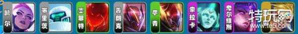 1、阵容搭配:凯尔+布里茨+墨菲特+普朗克+李青+索拉卡+卑尔维斯+迦娜