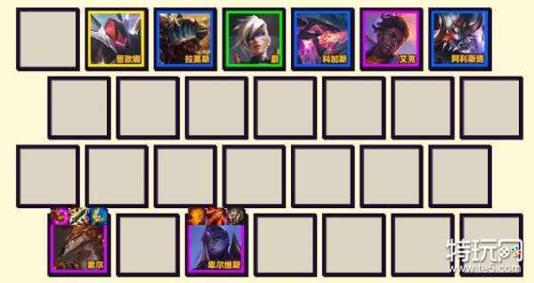 1、阵容构成:加里奥+泰隆+阿利斯塔+希维尔+艾克+佛耶戈+蕾欧娜+迦娜+厄斐琉斯