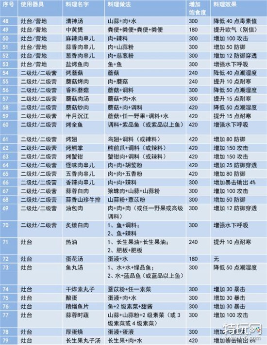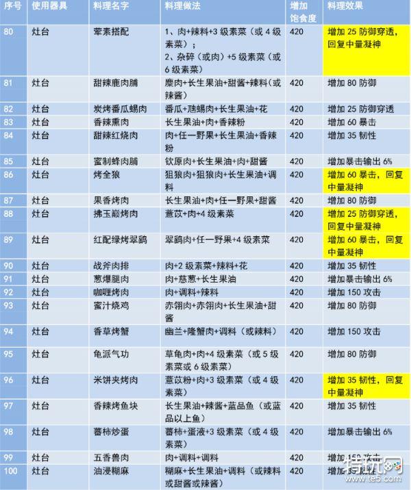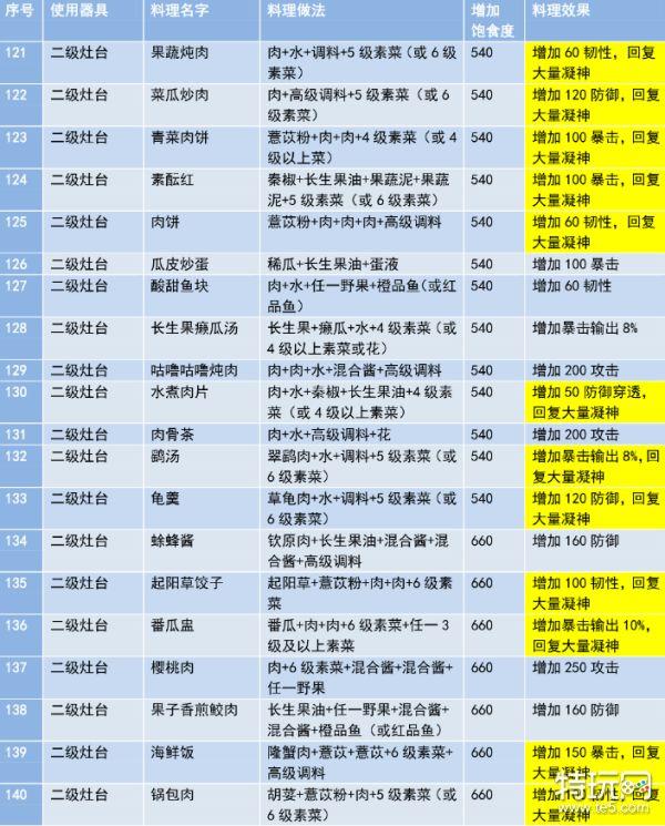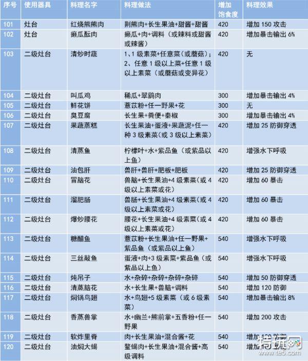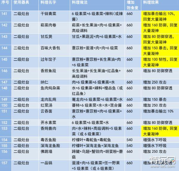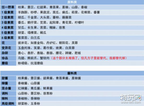 妄想山海食谱(菜谱)大全 妄想山海食谱配方大全