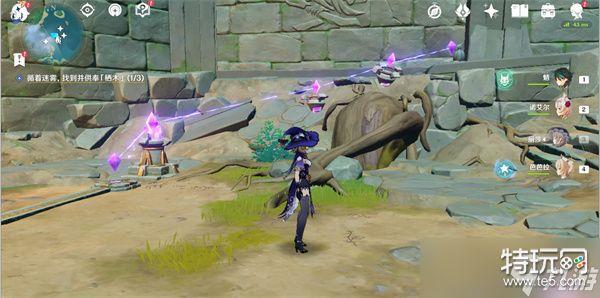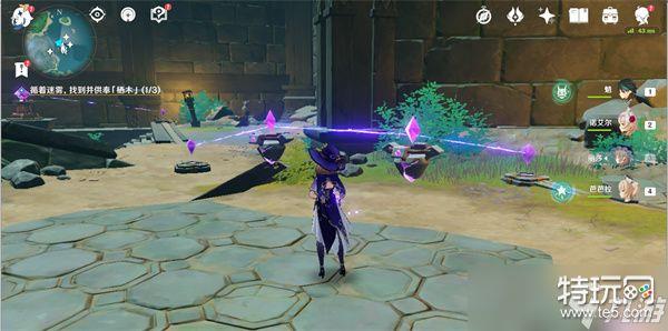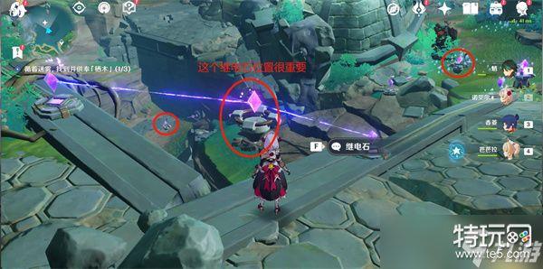 16、3个精灵归位后,排干下面的水,拾取下面的继电石,进行连线(共3个继电石),具体方法如下图圈起来的地方;