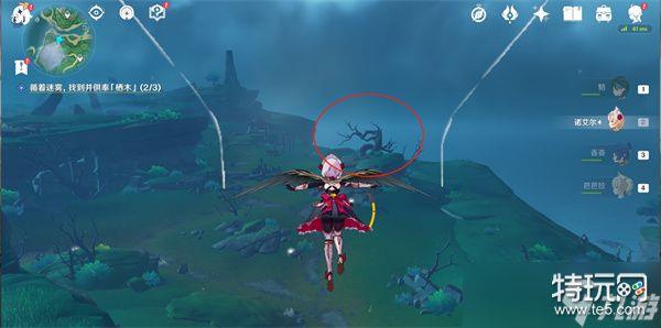 19、然后快到时,可以看到一棵歪脖子树(栖木),如下图位置,这样大家进去就可以直接找到阿瑠,对话接任务;