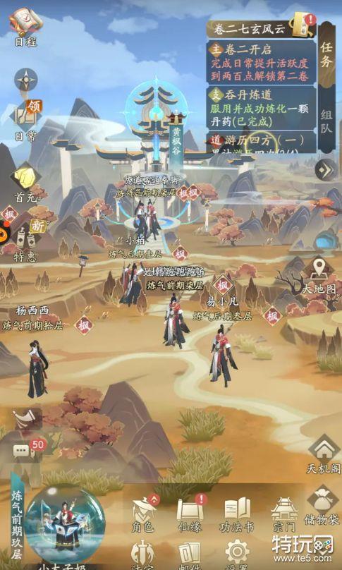 1、登录游戏,完成新手引导之后,回到游戏主界面,点击右下角的“箭头”,展开菜单。