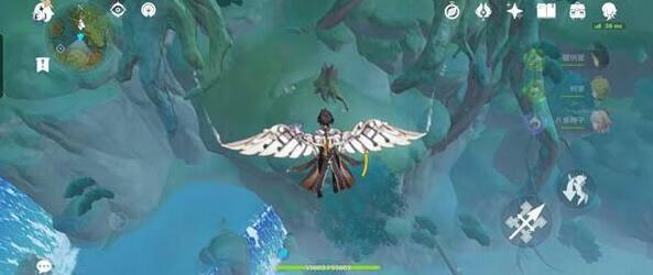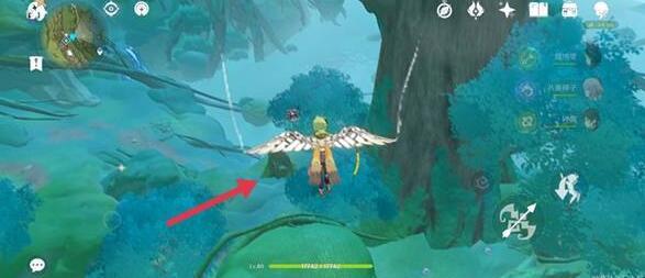 3、我们飞到一半后,视角往下,看见第三个树桩,里面有个普通宝箱。