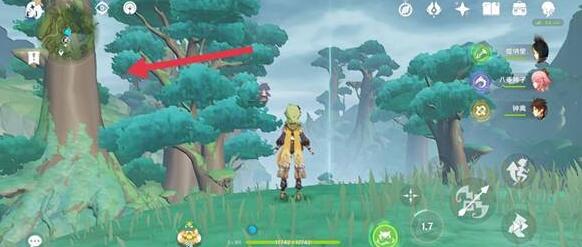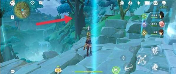 2、传送后,视角往后,到面前蘑菇位置,再到标记点位置。