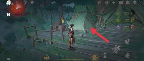 2、传送点过来后,视角往右,往标记点帐篷位置飞。