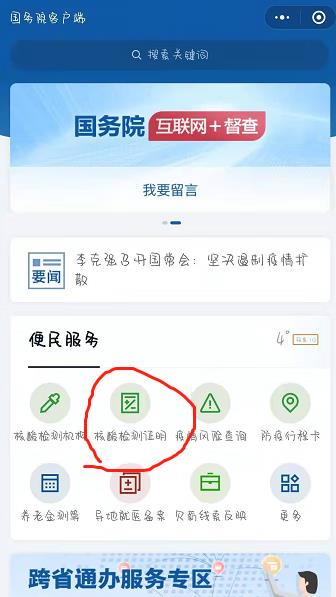 2、然后点击页面上的“核酸检测证明”。