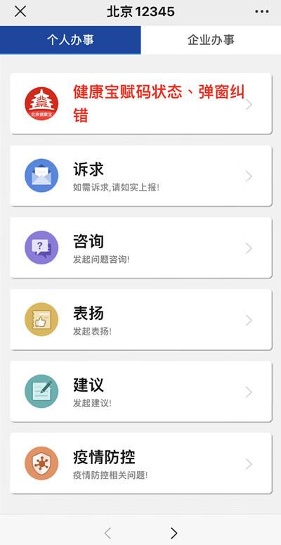 弹窗4还可以同时截图弹窗4界面和核酸0天界面,微信搜索“北京12345”~民意直通~弹窗赋码状态纠错,把截图上传按步骤填写。