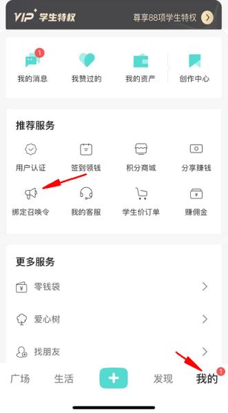 1、进入软件,在【我的】页面中,点击【绑定召唤令】。