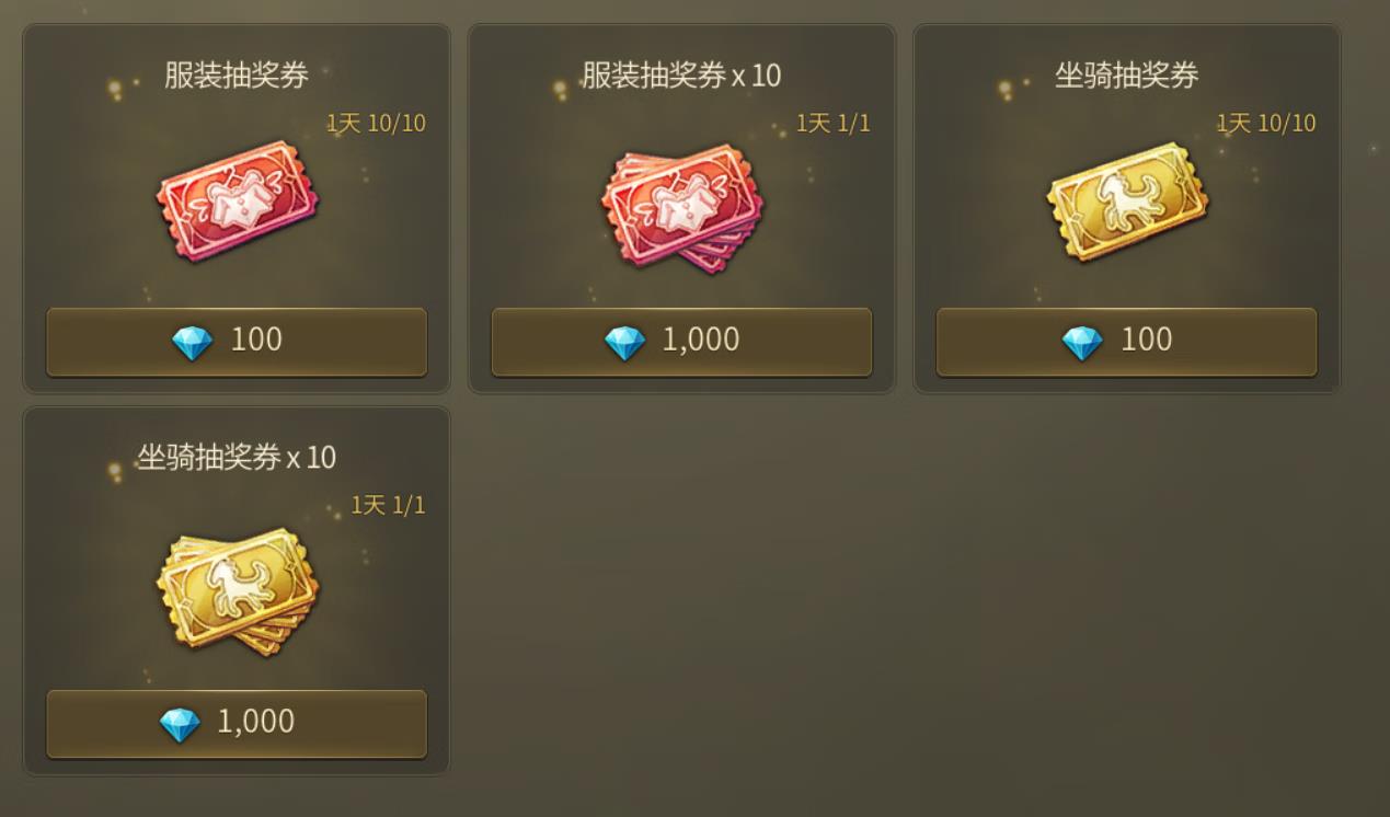 2.服装和坐骑的抽奖券,用于抽取漂亮的时装和坐骑。