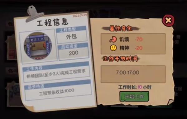 3.成为包工头之后每7天可以在人力市场接取一次工程招人的工作项目,工作时长10小时;