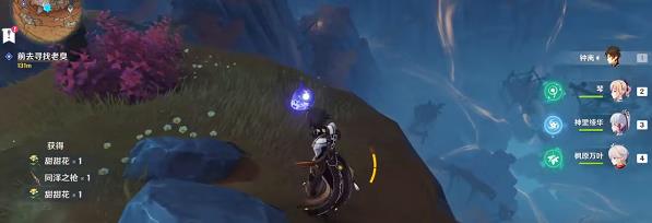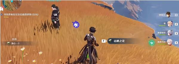 远眺之花在神像左上方的山上,摘取花朵后就会进入对话,直接战斗一场。