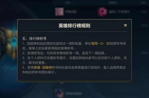 1、国服榜和战区榜的玩家经过一周的较量,将在每周一0:30结算称号排名,榜单上的玩家获得相应榜单称号。