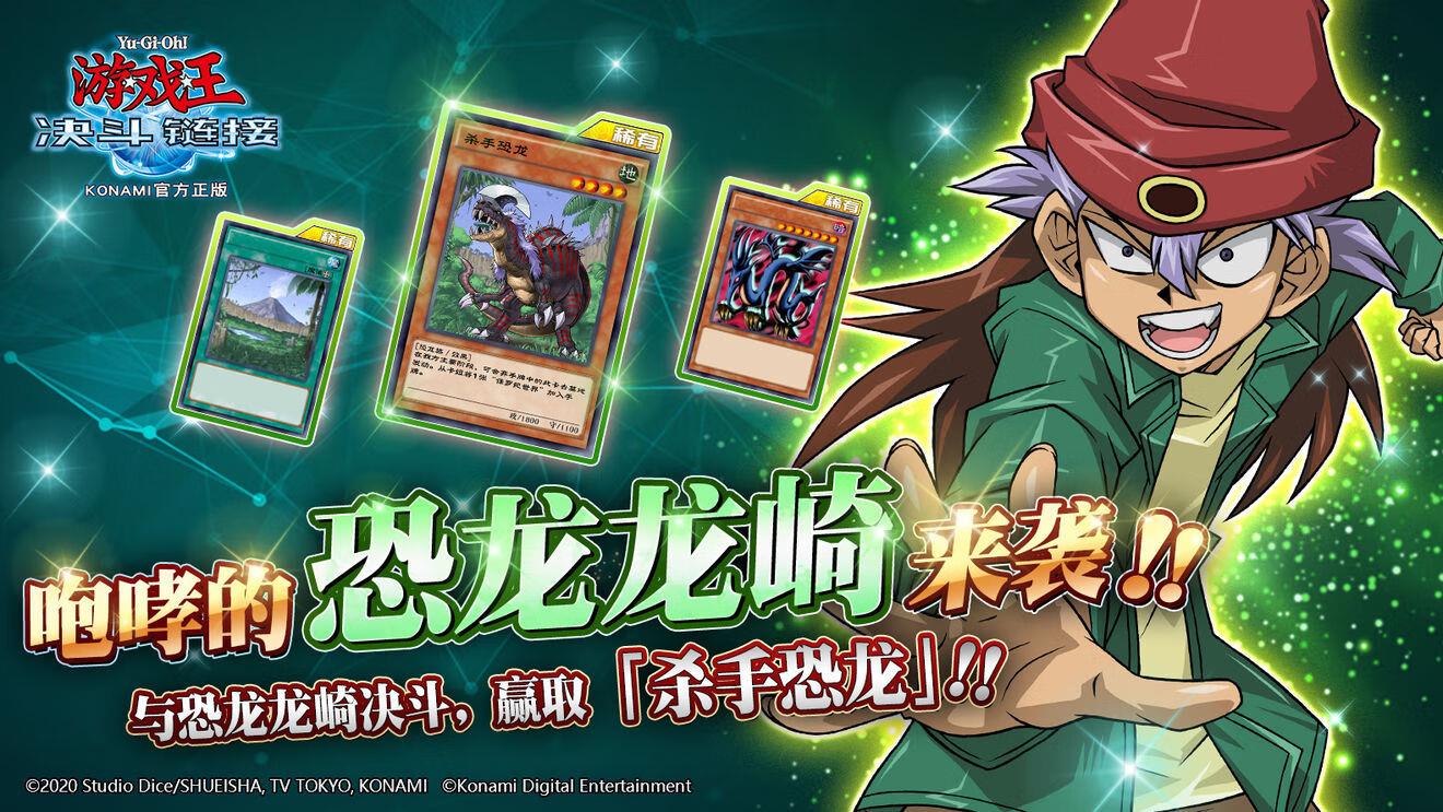咆哮的恐龙龙崎正出现在决斗世界中!与他决斗,可以赢取「杀手恐龙」「侏罗纪世界」等多张新卡!