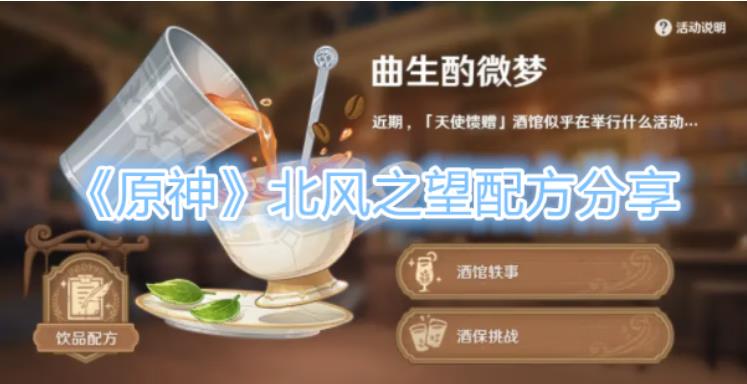 各位小伙伴们大家好呀,众所周知原神2.5版本更新了一个特殊的曲生酌微梦的活动,在这款活动中玩家需要制作各种不同的饮品,而有些小伙伴们想要知道这个北风之望配方怎么制作,于是今天小小编小编就来给大家一下,对此感兴趣的小伙伴们可以跟随小小编小编一起往下看。