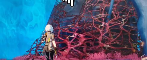 1、进入boss房间之后,我们要马上跑到右边柱子的植物上,爬上这些红色的藤蔓。