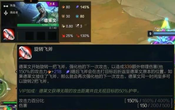 德莱文VIP效果:无限攻击距离;百分比无视护甲