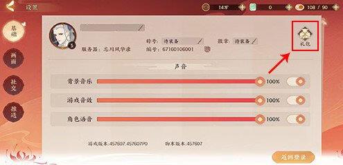 2、在设置的基础里面,在右上角这里,可以看到一个礼包按钮。