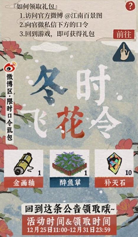 (3)等待官博回复领取成功后,再回到游戏内公告处,即可获得礼包,内含【金画卷*1+醉鱼草*1+补天石*10】。