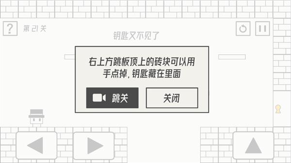 答案攻略:点开右上角两块砖可以获取钥匙,然后去过关即可