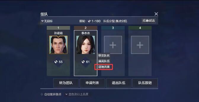 1.首先邀请好友组队,在队伍列表中点击好友的头像,通过弹出的窗口可以看到【邀请共建】按钮;