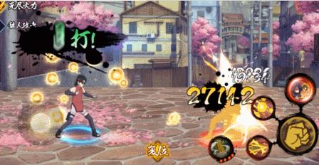 释放奥义技能后,佐助会闻讯赶来帮助佐良娜抓取敌人,随后佐良娜开启写轮眼,用雷遁与火遁攻击敌人。