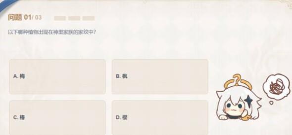 以下哪种植物出现在神里家族的家纹中?很多小伙伴还不知道这个问题的答案,小小编小编就为小伙伴们带来了这个问题的正确答案,还有不知道的小伙伴快来看看吧。