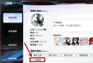 2.来到账号信息界面后,点击【用户服务】-【兑换码】功能按钮。
