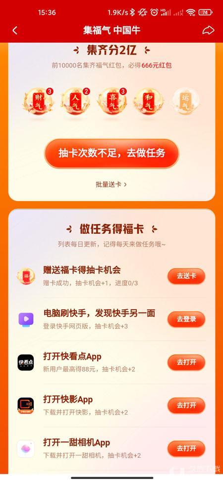 快手赠送福卡任务完成方法