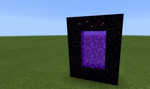 我们拿着打火石,点击传送门框的内侧,当紫色镜面生成之后,即代表传送门制作完成。