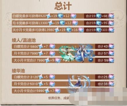 由于一些未知成就和其他难以统计的部分则是为了保守估计没有加入统计列表中,所以玩家能够实际获得的原石数量是会比现有的统计汇总高一些的。
