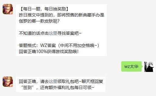 王者荣耀手游中,游戏中每天都会推出全新的问题。今天的问题是:昨日推文中提到的,即将预售的新典藏手办是伽罗的哪一款皮肤呢?下面小小编小编为大家带来今天的问题答案分享,还不知道答案的小伙伴快随小小编小编一起来看看吧!